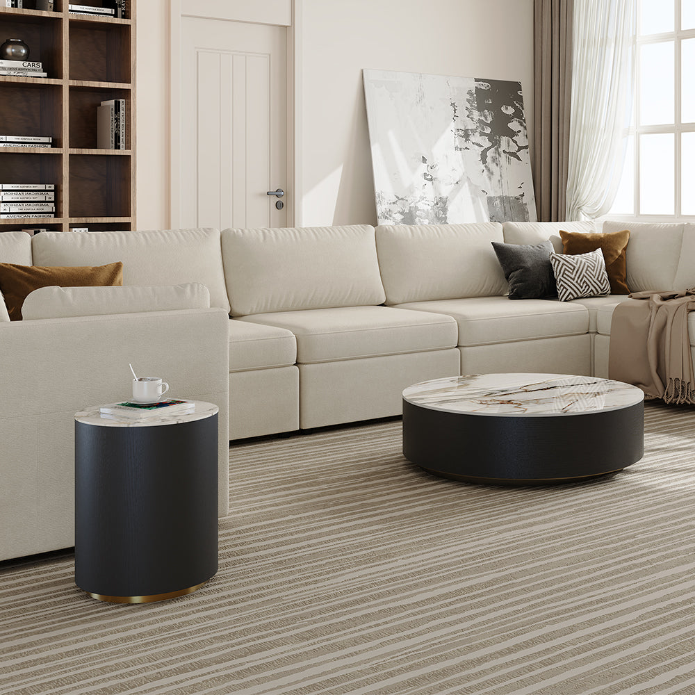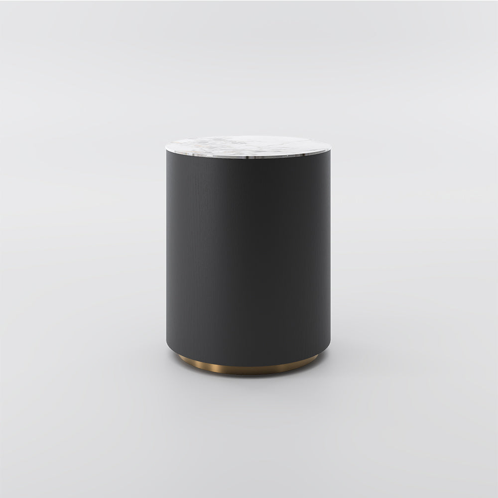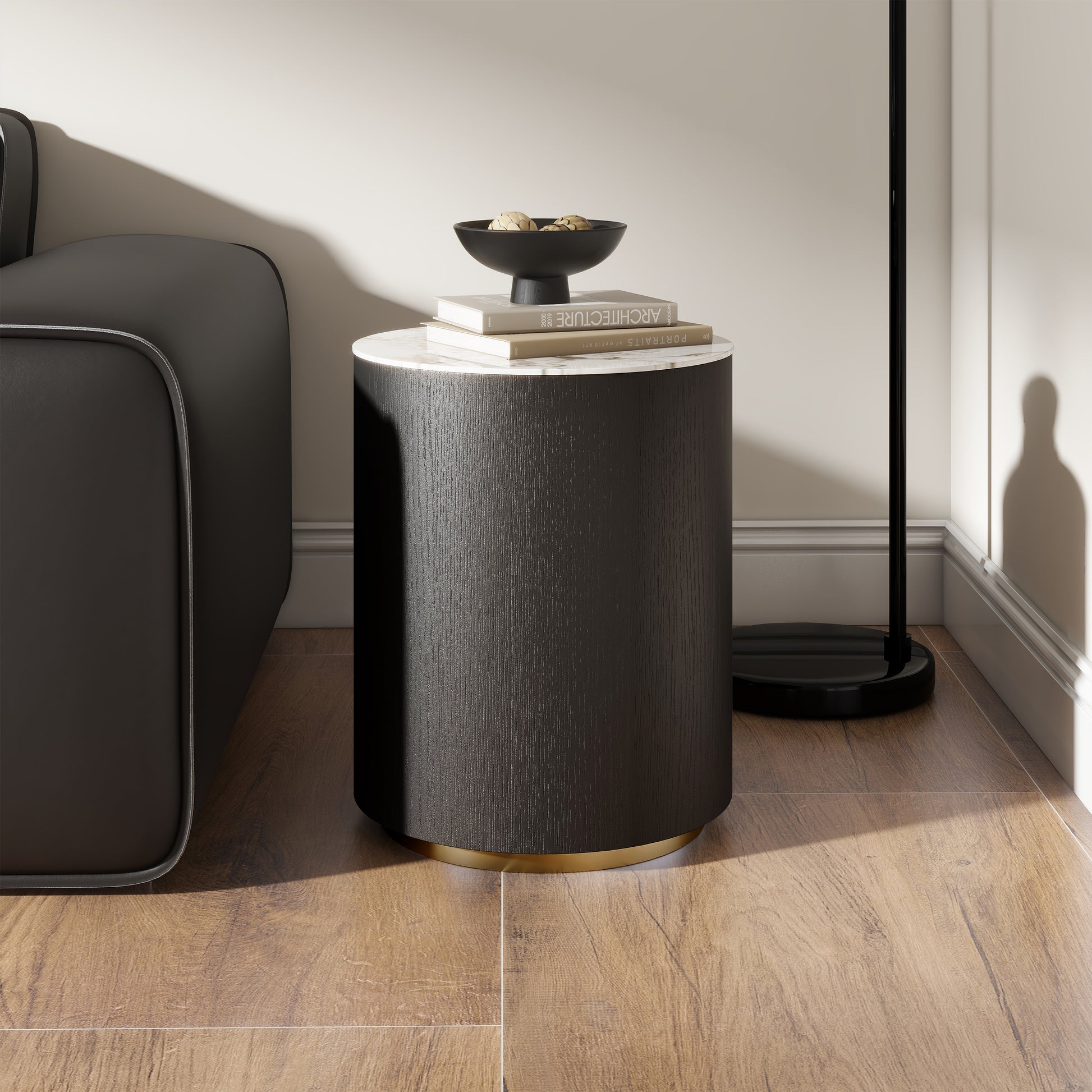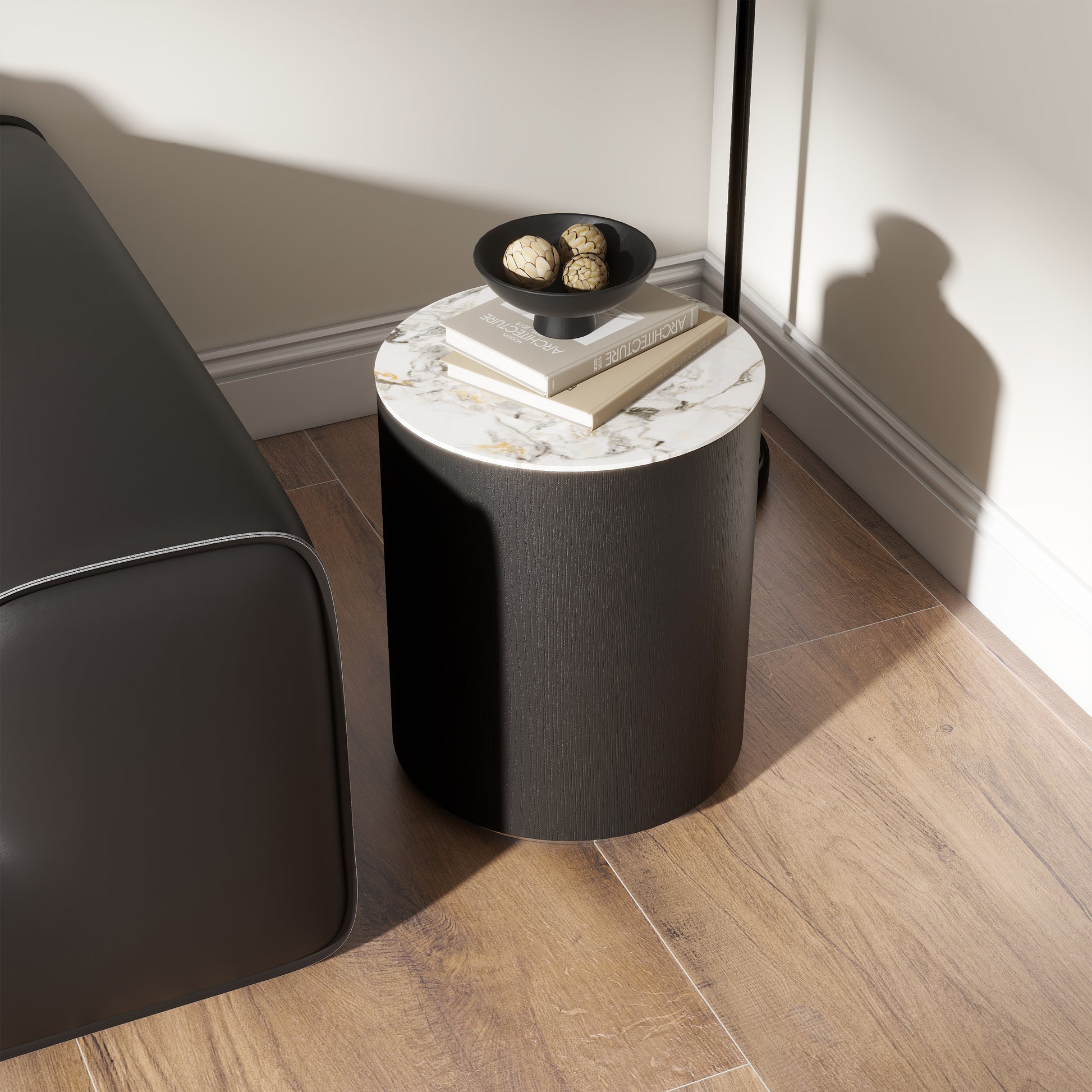 Advanced material combination: MDF veneer with red oak, complemented by slate and metal frame, showcasing quality and style. Classic black design: Simple yet elegant, effortlessly blending into various home styles. This side table combines practicality and aesthetics, adding unique charm to your space, making every use a delight.