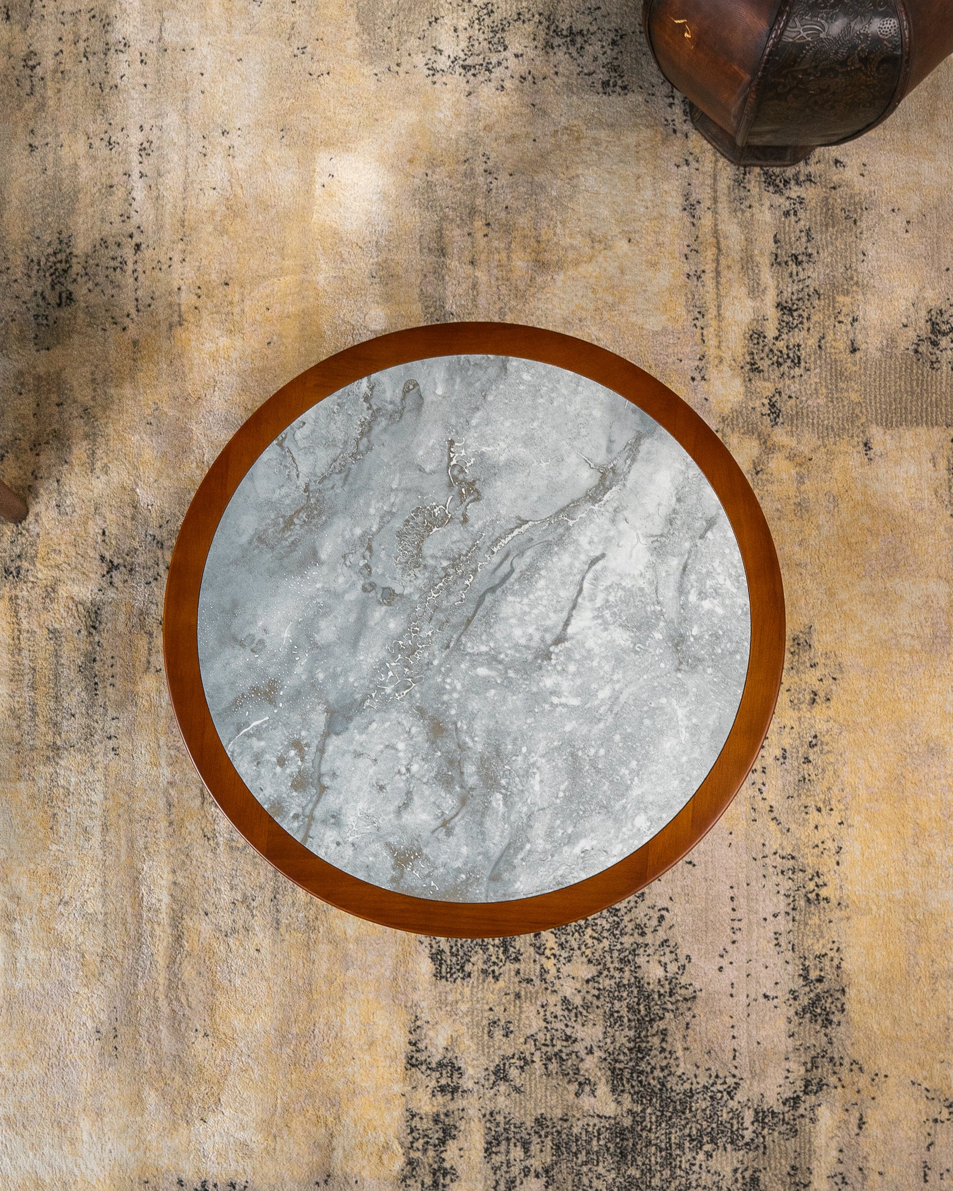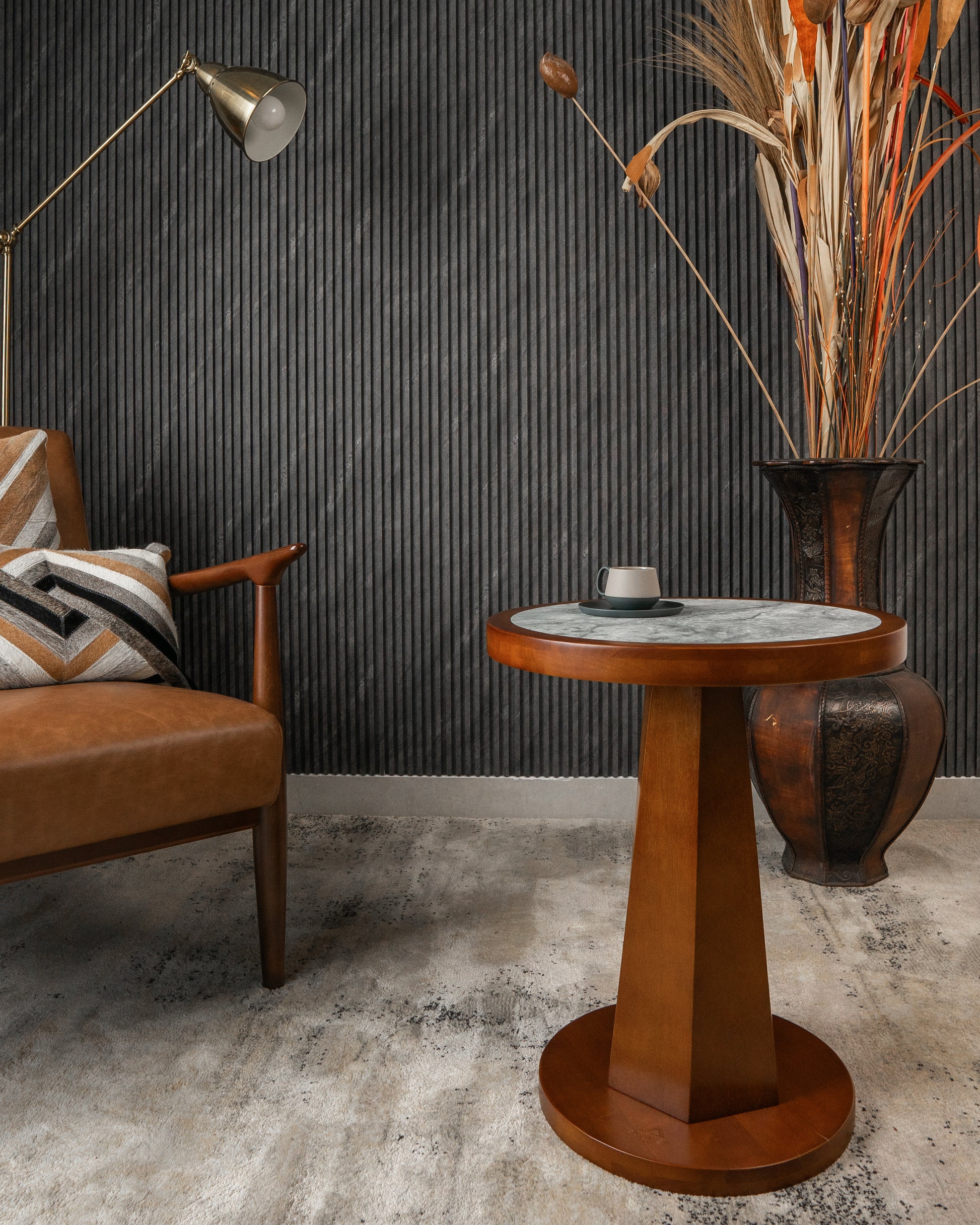 - الطاولة الجانبية: القطر 45 سم، الارتفاع 55 سم